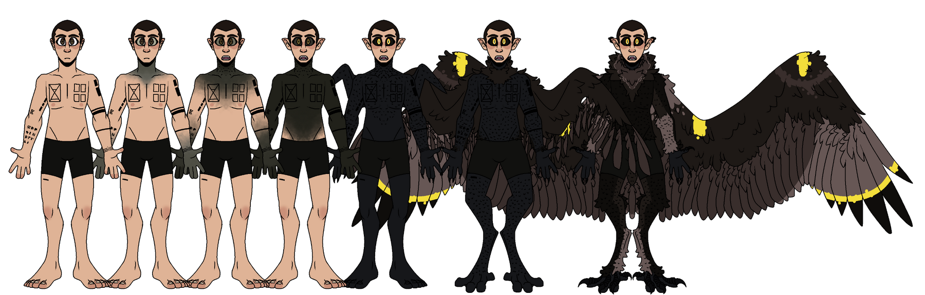 Corruption has three main parts to it. The Corruption itself, the initial transformation, and subsequent episodes. It presents itself differently for everyone, with varying levels of severity. In essence, Corruption alters how the body responds to stress by triggering a defensive physical transformation.STAGE ONE is the initial Corruption. To achieve the desired effects, the Bishops took Voidstalker "blood" and isolated its shapeshifting properties whilst reducing its toxicity, allowing it to merge with living cells once it enters a host. Once inside, it assimilates with a small number of cells and triggers a response that results in rapid cell death throughout the body in waves, with the altered cells reproducing and taking the place of the dead ones. This process can take up to two days, and leaves the body more flexible and open to shapeshifting in some respects. Some die during this stage. Most of the Corrupted don't remember this stage or the next.STAGE TWO is the first transformation. Most Corruption takes the form of an animal, with the vulture being the most common. Other animals like lions or cheetahs or really anything are possible too, as well as non-animal Corruptions, but those are very rare. This is the stage with the highest likelihood of death, whether it be from shock, blood loss, accidental injuries, or a myriad of all of those. About a third of all the Corrupted have died in this stage. It lasts for a week on average, wherein the first few days are spent sitting around with not many changes happening. The remainder of the time isn't well known, due to a memory gap almost all of the Corrupted have. What is known is that they enter what can be summed up to "survival mode." This is what creates both the memory gap and the aggression seen during the last few days of the initial transformation and in the days after.STAGE THREE is the final stage, and it's permanent. Once the blind hostility from the tail end of Stage Two subsides, they're now fully Corrupted. If they are not taken back by the Banditos or escape on their own, they are usually thrown out into Trench, having gotten what they so badly desired. But they're alone and now they have to deal with their Corruption by themselves. The Corruption can be triggered by many things that one would deem stressful, and more often than not when it gets triggered the Corrupted re-enters that "survival" state of mind until the body deems itself safe again. There are smaller groups, maybe 5-10 people each, of Corrupted living out deep in Trench. Some die after being released into the wilderness, not everyone is capable of surviving on their own. Others can't take the stress. And others are lucky enough to find company with the Banditos.
